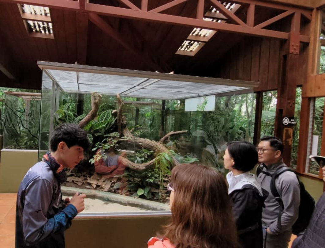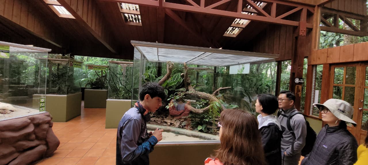 The journey continues with a visit to the reptile and amphibian exhibition, home to carefully preserved lizards, snakes, and frogs collected from across Costa Rica and displayed in a naturalistic environment.